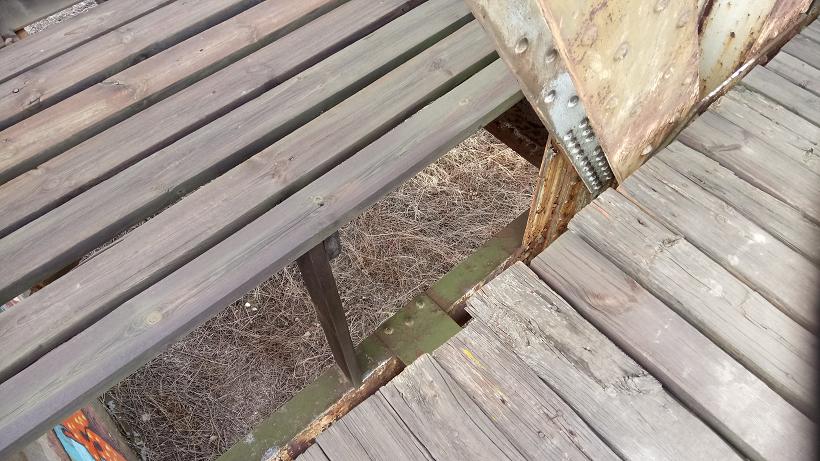 And further along the walkway the guard rail changes to this very open more modern, if we could really say this, tubular construction. Take note of the huge gaps to the lest of the walkway and through the newer guard fence. On this occasion I did not feel confident to walk all the way across but next visit will do this task as need to check out the other side.